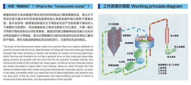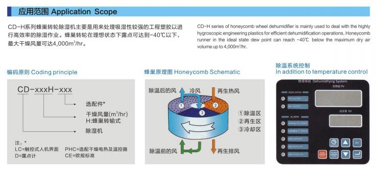 該系列采用PI.D.溫度控制系統(tǒng),可精確控制再生溫度; 該系列除濕系統(tǒng)采用冷卻器結(jié)構(gòu),確保更低回風(fēng)溫度及露點(diǎn);內(nèi)部裝有回風(fēng)過濾器,確保蜂巢轉(zhuǎn)輪不受原料粉塵污染;采用全分子篩蜂巢除濕,相比矽膠吸附式蜂巢除濕效果更好。